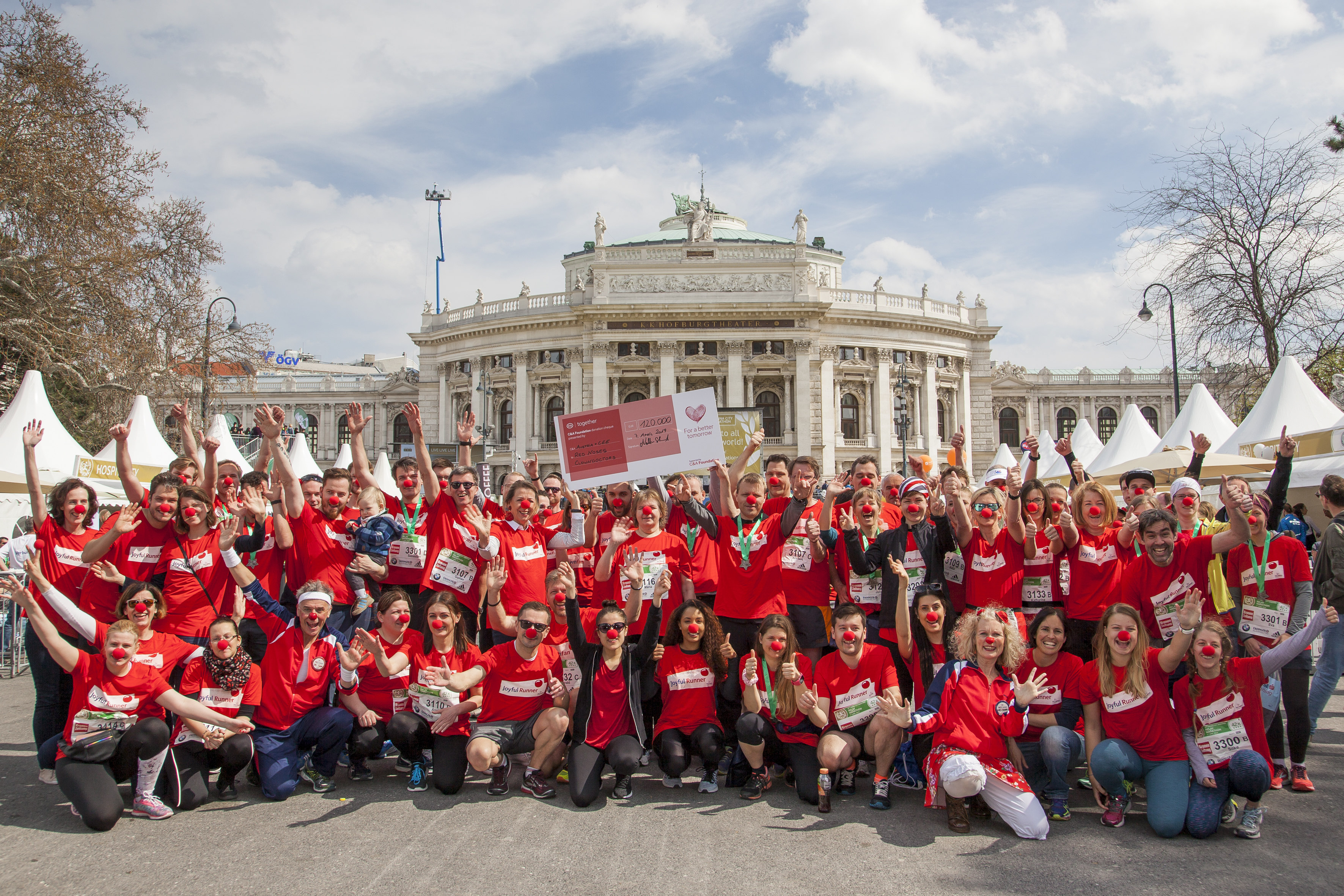 Enlarge photoAs much as a wholehearted laugh, sport releases “happy” hormones. That is why a total of 32 relay teams from C&A employees from Austria and CEE took up the challenge to run the marathon and support us at the same time. They all want RED NOSES clowns to help sick children, especially in difficult examinations or painful treatments.