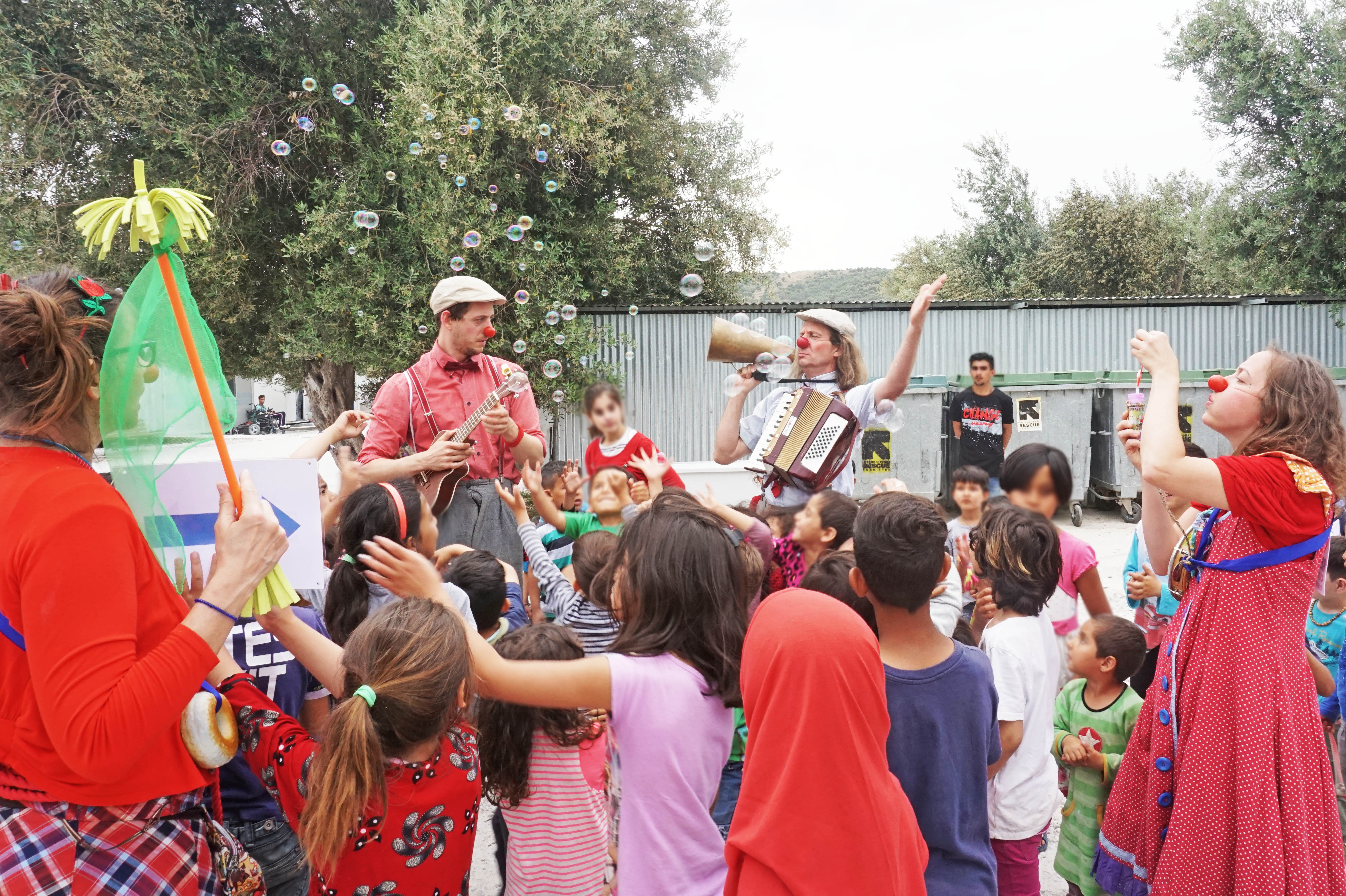 During our mission to Lesbos and Samos, we had several clown shows and parades. We succeeded to conduct two parades inside the Moria camp, thanks to our cooperation with the organisation Light Without Borders, including one in the protected “safe zone” of the camp for unaccompanied minors.