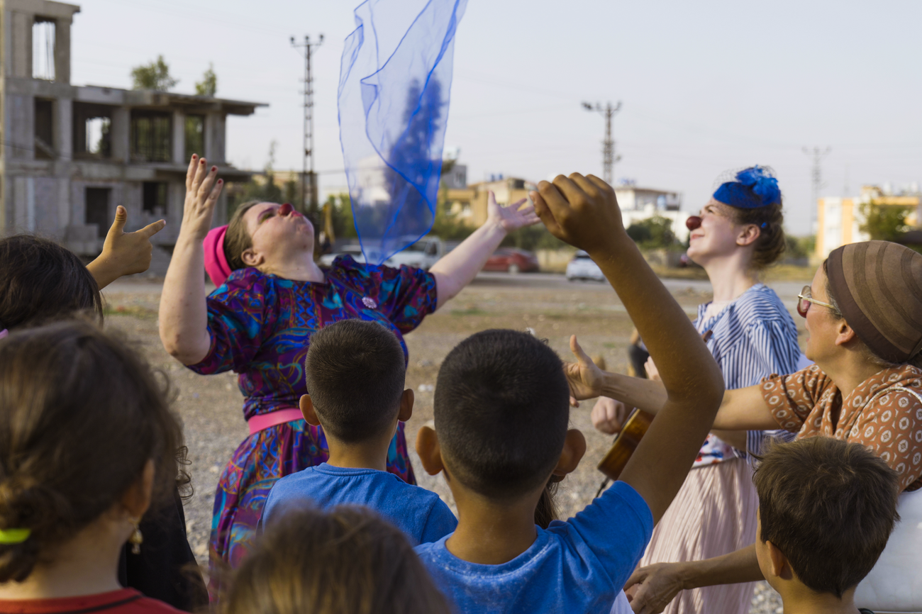 At RED NOSES International, we are committed to addressing these challenges through our Emergency Smile programme. This initiative reaches an average of 4,000 children per year, bringing joy and emotional support to those affected by crises. Our professionally trained clown artists visit natural disaster sites and displacement camps, using empathy, humour, and compassion to create moments of happiness and connection. Scientific research has also shown this profound impact of humour in fostering emotional wellbeing.