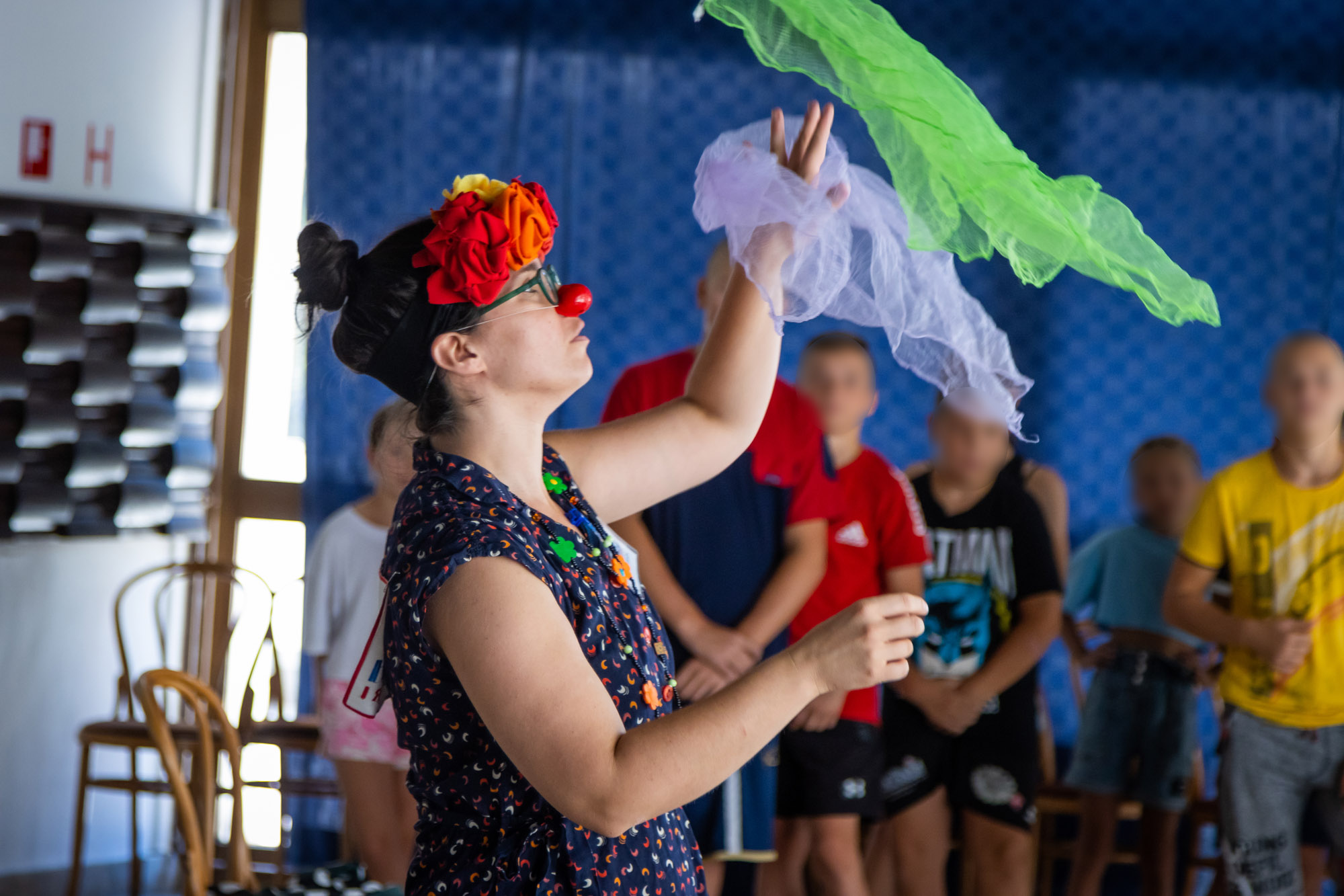"With these activities, we divert their attention from dark thoughts and create the possibility for them to feel like children again. The workshop for circus skills helped them to move to another world, to have fun and cheer up, and what is most important, at least for a while to forget the troubles that befell them," shared Dajana Džafo, our clown doctor Danice from Skalica.