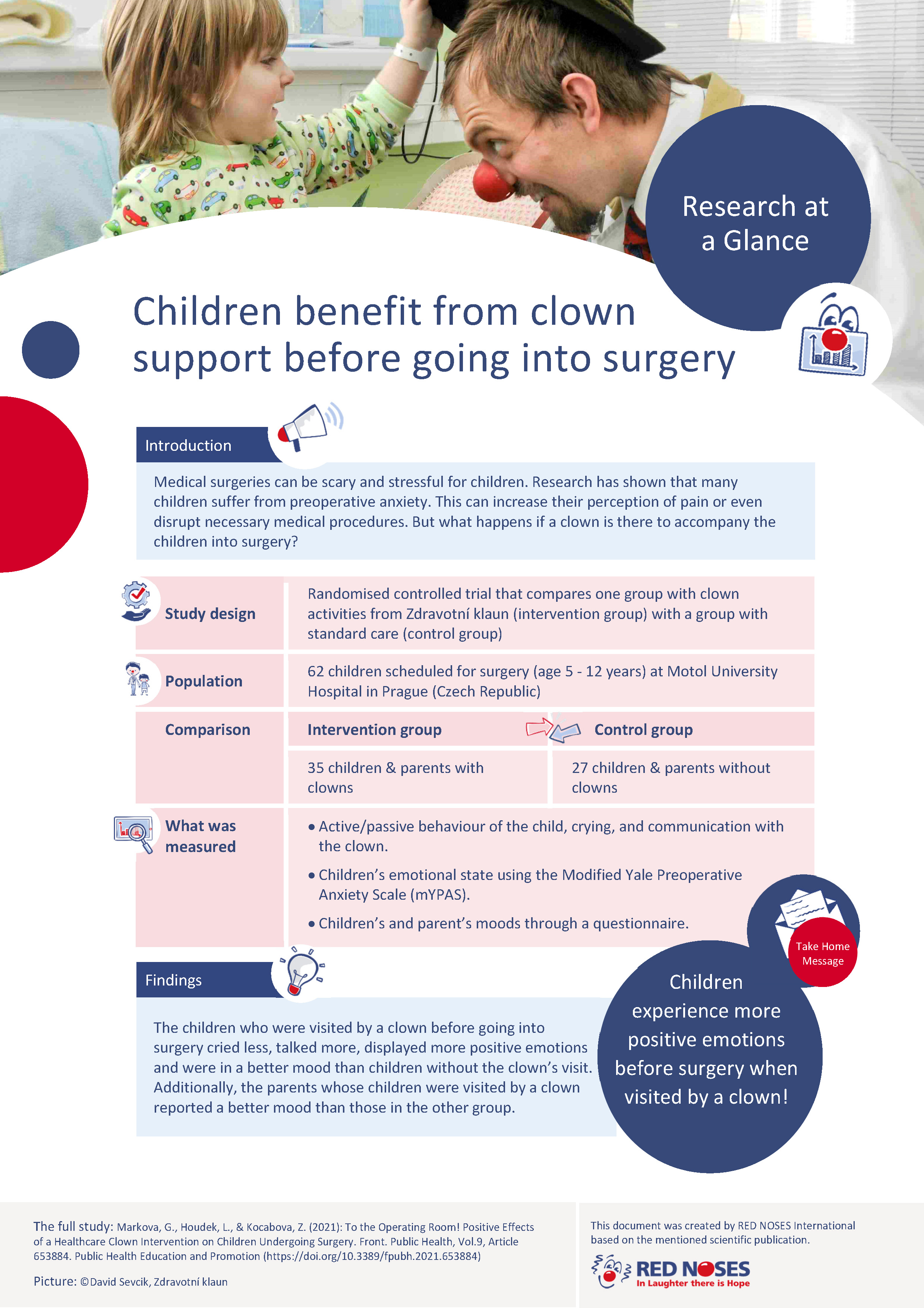 Research at a Glance highlights findings from one or more healthcare clowning studies in a one-page format.